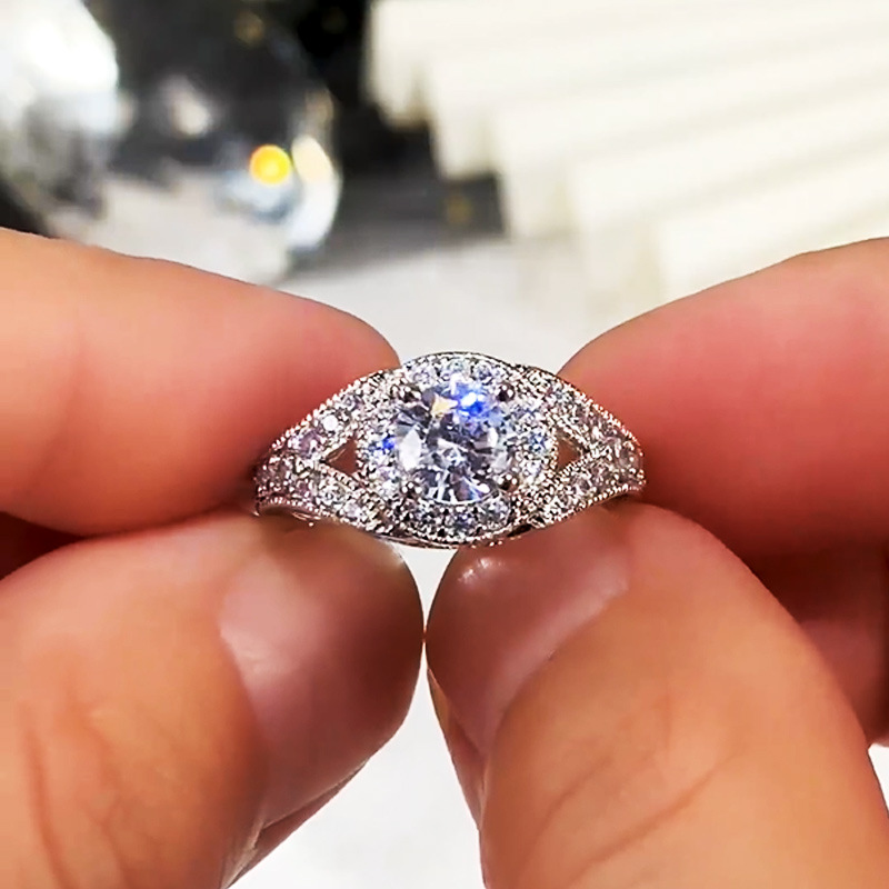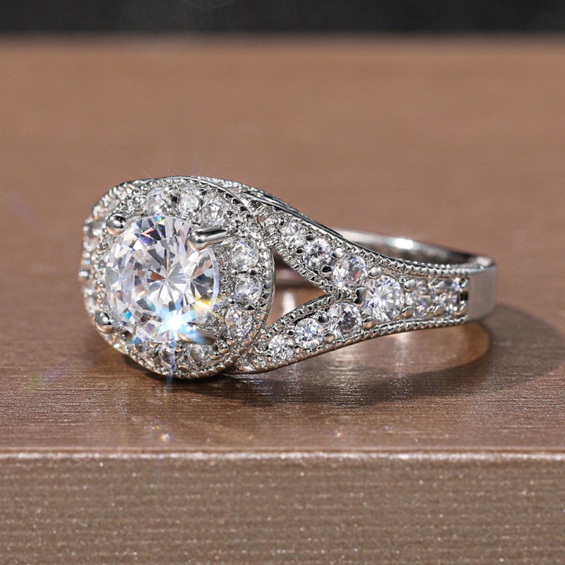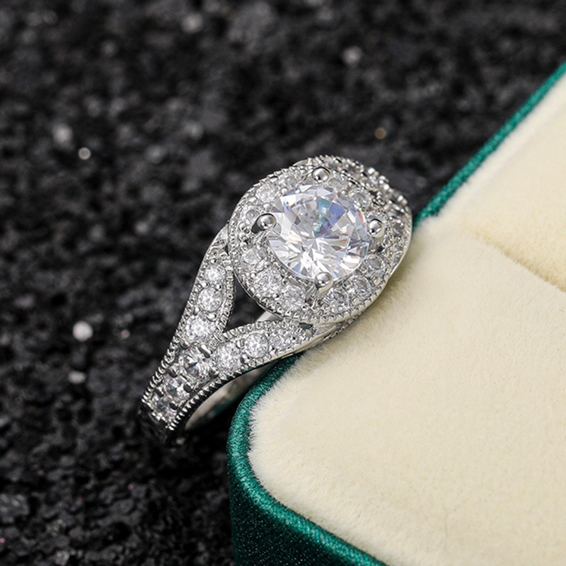 Womens Versatile Ultra-Shimmering Micro-Set Round Simulated Zircon Ring